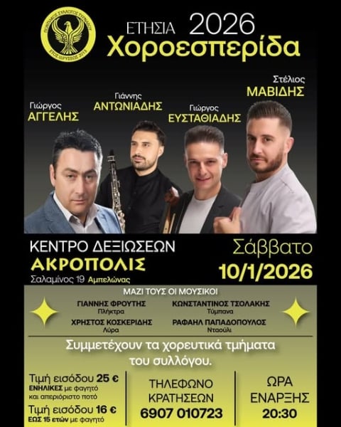Ο χορός θα φιλοξενηθεί στο κέντρο δεξιώσεων «Ακρόπολις» (Σαλαμίνος 19, Αμπελώνας), από τις 20:30, και για κρατήσεις μπορείτε να καλείτε το τηλέφωνο 6907010723.