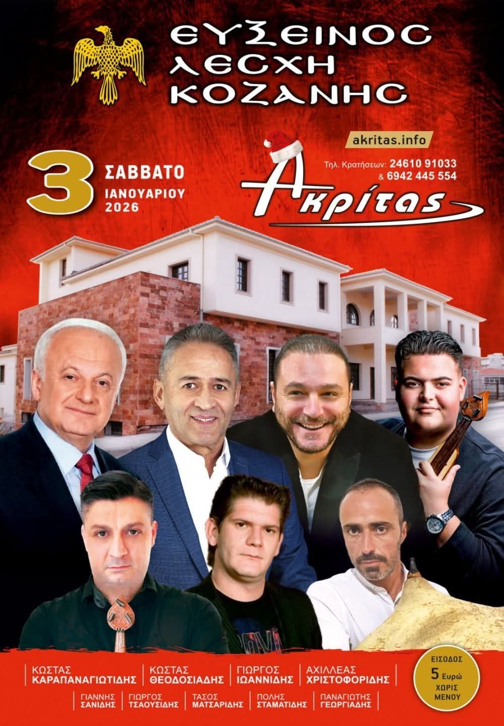 •Για κρατήσεις στα τηλέφωνα 2461091033 &6942445554.