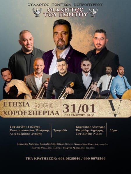 Ο πρώτος μήνας του νέου χρόνου επιφυλάσσει τρικούβερτο γλέντι για τον Σύλλογο Ποντίων Ασπροπύργου «Οι Ακρίτες Του Πόντου» που ετοιμάζεται για την ετήσια χοροεσπερίδα του.
