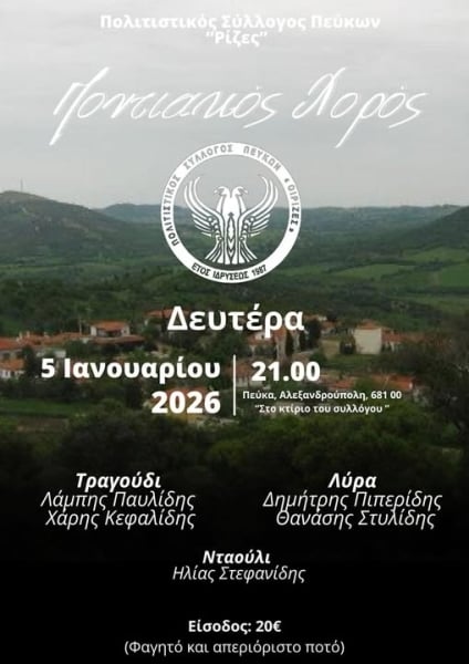 Με τιμώμενη την ομάδα της «Ψηφιακής Σάντας» θα πραγματοποιηθεί σήμερα, Δευτέρα, το παραδοσιακό ποντιακό γλέντι του Πολιτιστικού Συλλόγου Πεύκων «Οι Ρίζες».