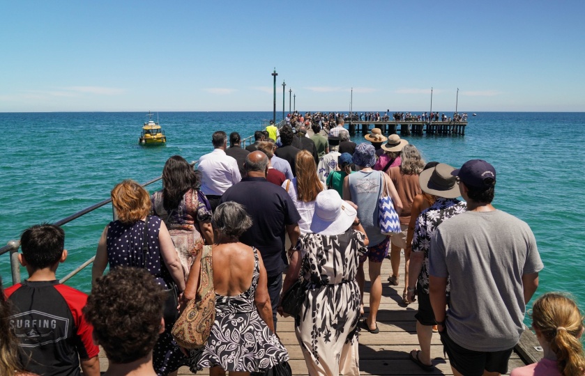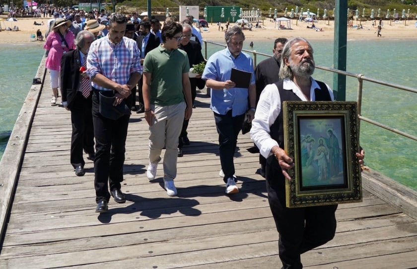 Στην προβλήτα και την παραλία είχαν συγκεντρωθεί εκκλησιαζόμενοι, οικογένειες των συμμετεχόντων, Έλληνες ομογενείς που ζουν στην περιοχή αλλά και ντόπιοι Αυστραλοί κάτοικοι, που έσπευσαν να δουν από κοντά το έθιμο.