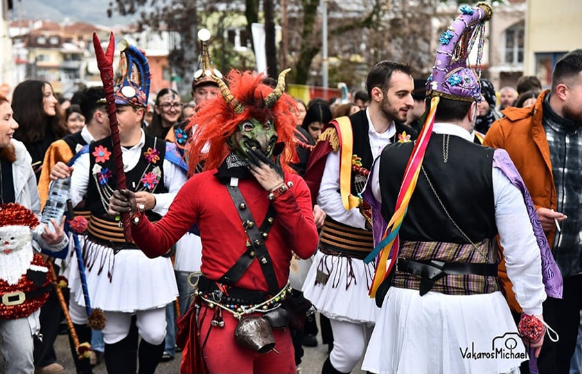 Με κόκκινο παντελόνι, ξύλινο ραβδί και μια μάσκα που θυμίζει παγανιστική λιτανεία, ο «Διάβολος» των Μωμόγερων έκλεψε και φέτος την παράσταση στην Ανατολή Ιωαννίνων. Παρά τη βροχή και το τσουχτερό κρύο, το πλήθος ακολούθησε το δρώμενο μέσα στους δρόμους της πόλης, με μουσικούς, παραδοσιακές φορεσιές, πειράγματα και αναπαραστάσεις που κουβαλούν τη μνήμη του ποντιακού πολιτισμού.