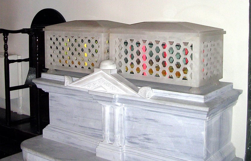 Τα λείψανα των Αγίων Ιωάννη Χρυσοστόμου και Γρηγορίου Θεολόγου στο ναό του Αγίου Γεωργίου, στον Ελληνικό Ορθόδοξο Πατριαρχικό Θρόνο, στην Κωνσταντινούπολη (πηγή: commons.wikimedia.org)