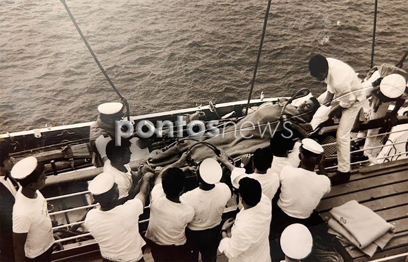 Όσο συνεχίζεται η κουβέντα μας θυμάται και έναν Άγγλο που πέθανε εν πλω την ώρα που χόρευε και αναγκάστηκαν να τον ταριχεύσουν, έναν Πορτογάλο που πήραν από φορτηγό πλοίο και εγχειρίστηκε εσπευσμένα λόγω οξείας σκωληκοειδίτιδας.