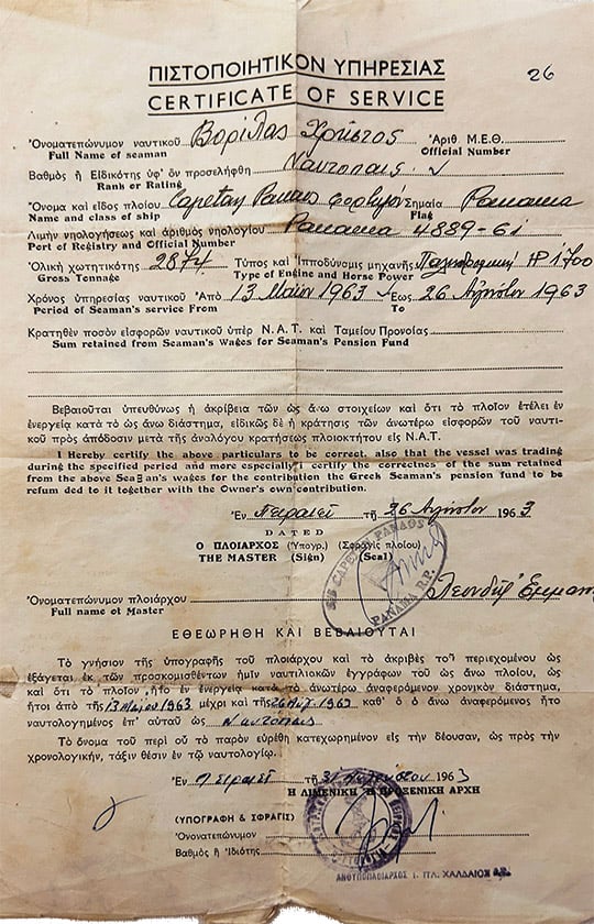 Μας αρέσει να τον πειράζουμε για τα λιμανίσια αγγλικά του και για το «Έχω πάει» για κάθε χώρα που αναφέρουμε – αρκεί να έχει μεγάλο εμπορικό λιμάνι. Τον πειράζουμε γιατί τη δική μας λαχτάρα για φευγιό δεν την συμμερίζεται. Και έχει τους λόγους του.