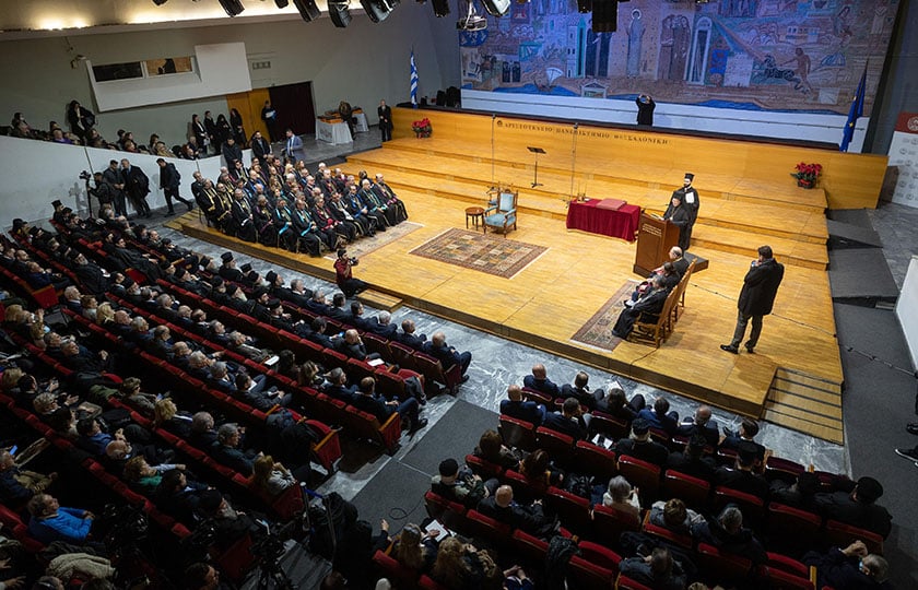 Τελετή απονομής ειδικής τιμητικής διάκρισης του εμβλήματος του Αριστοτελείου Πανεπιστημίου Θεσσαλονίκης "Άγιος Δημήτριος" στον Αρχιεπίσκοπο Αμερικής Δημήτριο.  Πέμπτη 15 Ιανουαρίου 2026  (Φωτ.: Ραφαήλ Γεωργιάδης/EUROKINISSI)