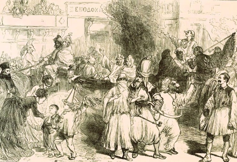 Η αλήθεια είναι ότι οι ρίζες του καρναβαλιού με το οποίο συνδυάσθηκε η περίοδος της Απόκρεω βρίσκονται στη χειμαρρώδη ζωή του έκλυτου Διονύσου, που στα αχαλίνωτα γλέντια του απεικονίζεται συχνά με προσωπείο για να κρύψει τον εαυτό του και τον κάθε ξένο που έχει αναγκαστεί να ενσωματώσει. Είναι, βλέπεις, ένας θεός, γιος του Δία και της κοινής θνητής Σεμέλης, κυνηγημένος από το μένος της Ήρας, μεγαλωμένος από τις Νύμφες, τις ξέγνοιαστες κόρες του δάσους, και ταξιδεμένος απ΄ άκρου σ΄ άκρο της γης, που πουθενά δεν καταφέρνει να στεριώσει και που παντού γίνεται δεκτός ως ξένος. Ένας θεός σε διαρκή έκσταση που απαλείφει σύνορα, εγκολπώνεται, ενσαρκώνει τα αντίθετα και θολώνει τις κατηγορίες, άνθρωπος ή ζώο, άνδρας ή γυναίκα, ζωντανός ή νεκρός. Πότε ημίγυμνος και πότε ντυμένος γυναίκα, εμφανίζεται στεφανωμένος με φύλλα αμπέλου, της οποίας άλλωστε τους καρπούς χάρισε στους ανθρώπους, παρασέρνοντάς τους σε πελάγη μέθης και ευφορίας. Ένας θεός μεταμορφώσεων και μασκαρεμάτων, που φέρνουν μαζί τη χαρά, την ανησυχία και την αναστάτωση, γιατί και οι γιορτές, που οργανώνονται για χάρη του (Ανθεστήρια, Μεγάλα Διονύσια) γίνονται στο κατώφλι της Άνοιξης, τότε που η φύση βγάζει τη βαριά χειμωνιάτικη φορεσιά της και αλλάζει διάθεση.