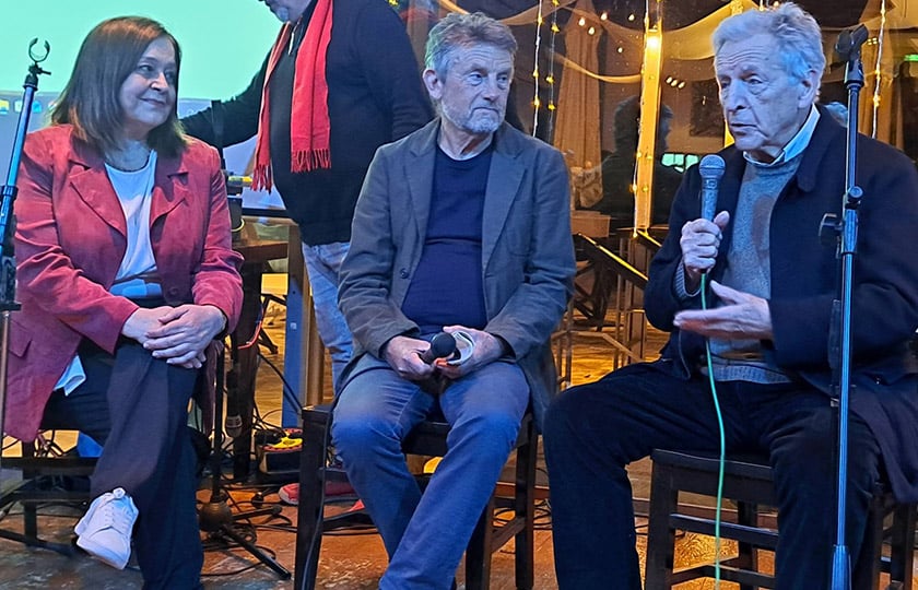 Νέοι άνθρωποι, άνθρωποι του θεάτρου και του κινηματογράφου, εκπρόσωποι του πολιτικού και πνευματικού κόσμου, και δεκάδες πολίτες γέμισαν ασφυκτικά τον ιστορικό χώρο, έχοντας τη μοναδική ευκαιρία να ακούσουν από τον ίδιο τον δημιουργό βιώματα και σκέψεις από τη μακρά διαδρομή του στην τέχνη και τη ζωή.