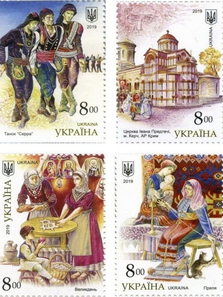 Σειρά ουκρανικών γραμματοσήμων με τίτλο «Εθνικές μειονότητες της Ουκρανίας. Έλληνες», 2019 (πηγή: filtorg.ru)