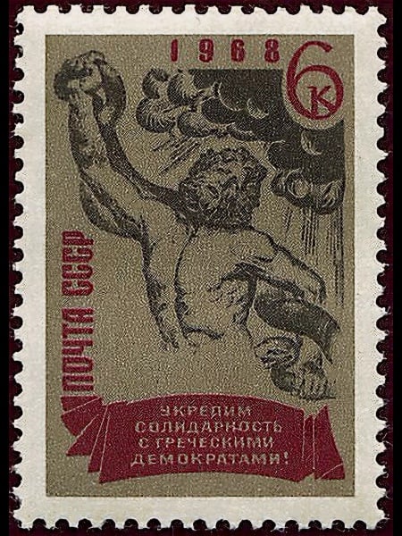 Σοβιετικό προπαγανδιστικό γραμματόσημο του 1968 με τον Λαοκόοντα (πηγή: wildberries.kg)