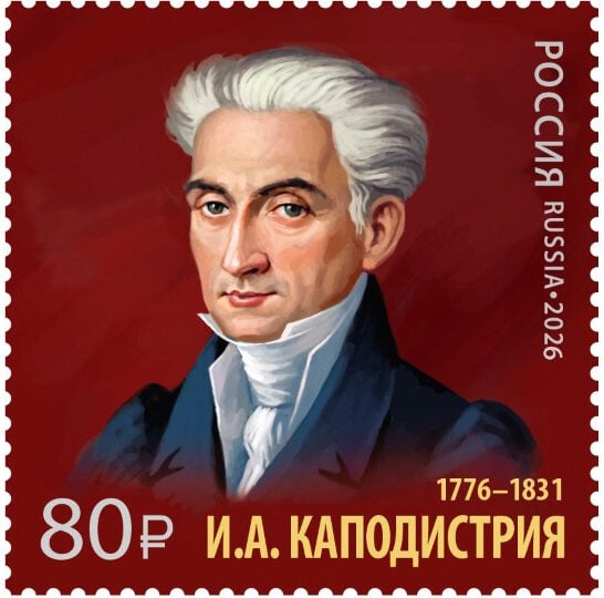 Γραμματόσημο με τη μορφή του Ιωάννη Καποδίστρια εξέδωσε την Τρίτη 10 Φεβρουαρίου το υπουργείο Εξωτερικών της Ρωσίας σε συνεργασία με τη φιλοτελική εταιρεία «ΑΟ Μάρκα», για τα 250ά γενέθλια του μεγάλου διπλωμάτη και κυβερνήτη της Ελλάδος