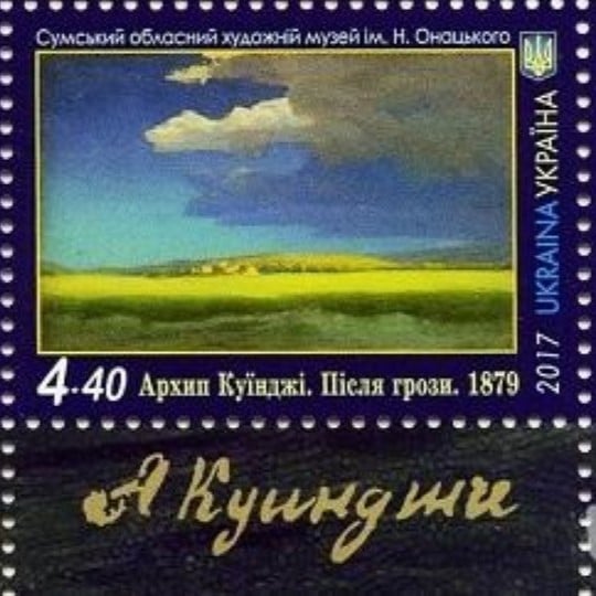 Ο πίνακας του Άρχιππου Κουιντζή «Μετά την καταιγίδα», σε ουκρανικό γραμματόσημο του 2017 (πηγή: marki.10ki.biz)