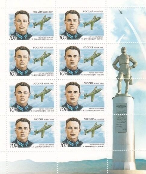 Το 2009 είχαν κυκλοφορήσει γραμματόσημα με τον ήρωα πιλότο Γρηγόριο Μπαχτσιβαντζή, δοκιμαστή των πρώτων σοβιετικών αεριωθούμενων και μαχητή του Β’ Παγκόσμιου Πολέμου, ο οποίος έπεσε την 27η Μαρτίου του 1943 εκτελώντας δοκιμαστική πτήση.