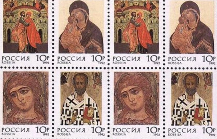 Ακόμα παλιότερα, το 1992, η Ρωσία εξέδωσε γραμματόσημα με απεικονίσεις των έργων του μεγάλου Θεοφάνη του Έλληνα (1340-1410).