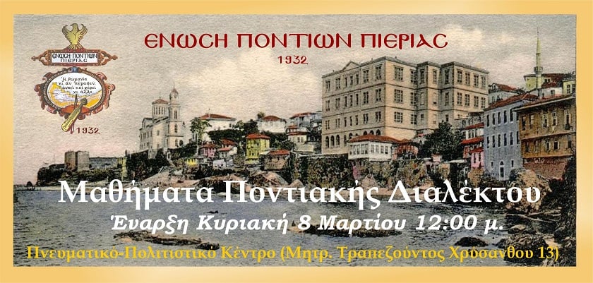 Οι συναντήσεις θα πραγματοποιούνται στο Πνευματικό-Πολιτιστικό Κέντρο της Ένωσης Ποντίων Πιερίας, στη Μητ. Τραπεζούντος Χρύσανθου 13.