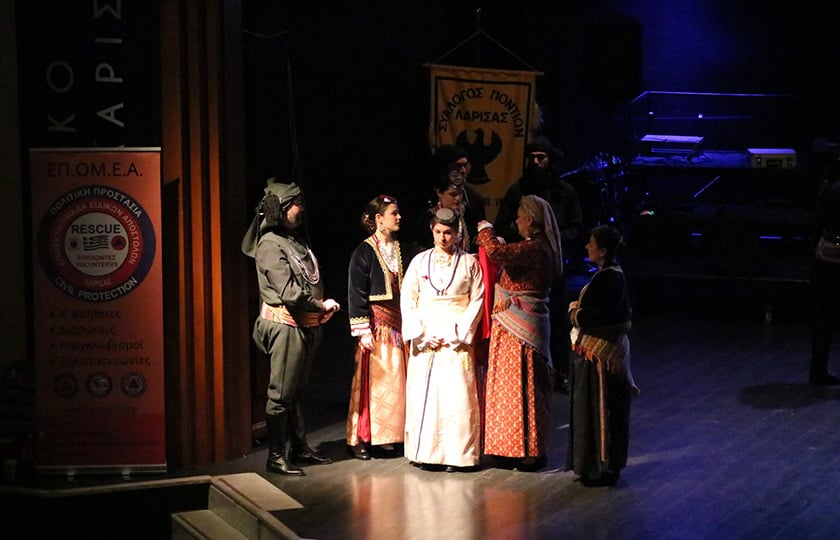Ιδιαίτερη εντύπωση προκάλεσε η εμφάνιση του Συλλόγου Ποντίων Λάρισας, που παρουσίασε σκηνές από τον παραδοσιακό ποντιακό γάμο, αναδεικνύοντας τη βαθιά συμβολική και τελετουργική διάσταση των εθίμων.