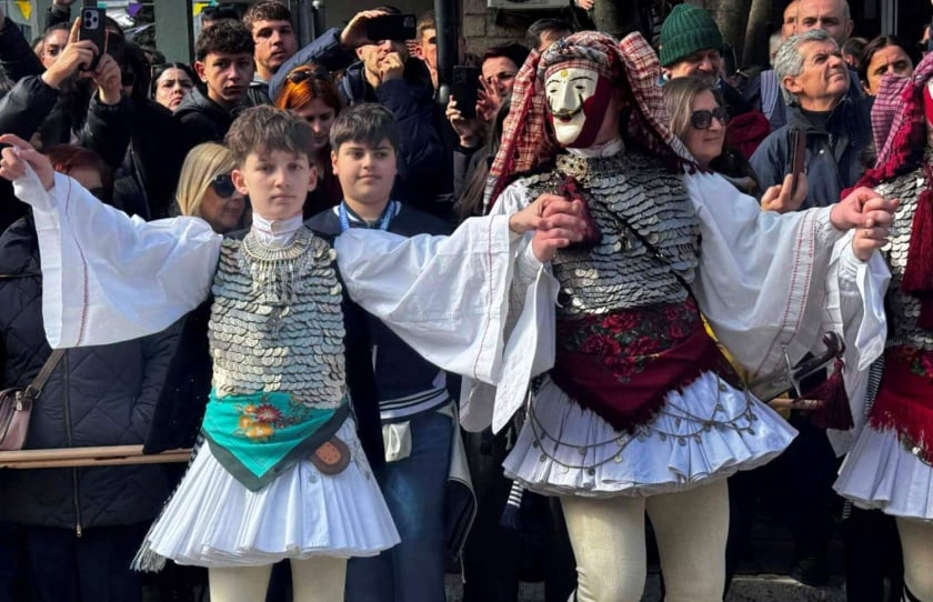 Επισκέπτες από κάθε γωνιά της Ελλάδας βρέθηκαν σήμερα, Κυριακή, στη Νάουσα για να παρακολουθήσουν το παραδοσιακό αποκριάτικο δρώμενο «Γενίτσαροι και Μπούλες».