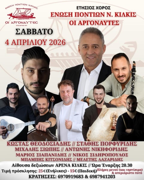Μια εντυπωσιακή βραδιά ετοιμάζουν το ΔΣ και τα μέλη της Ένωσης Ποντίων ν. Κιλκίς «Οι Αργοναύτες» για το Σάββατο 4 Απριλίου, ημέρα που έχει προγραμματιστεί ο ετήσιος χορός τους.