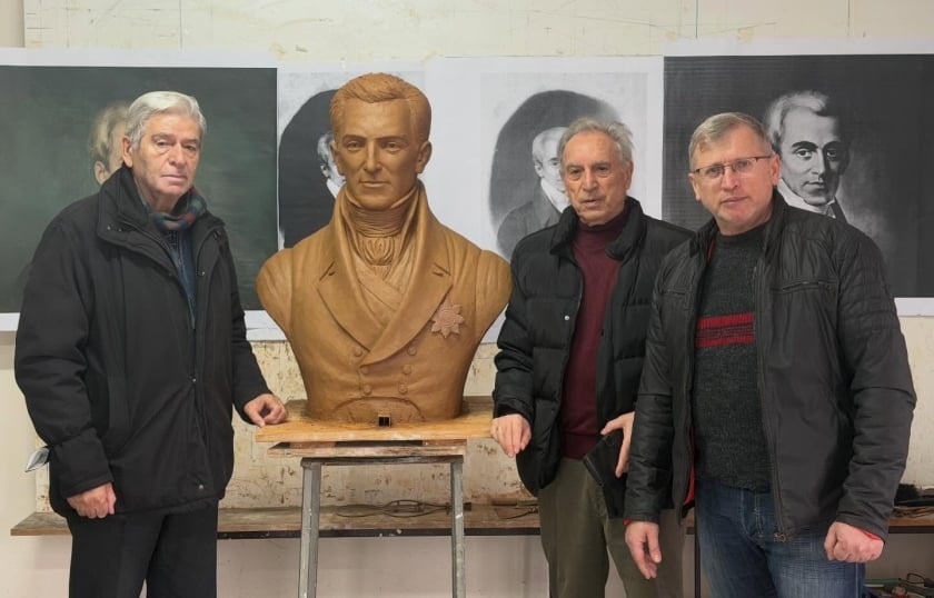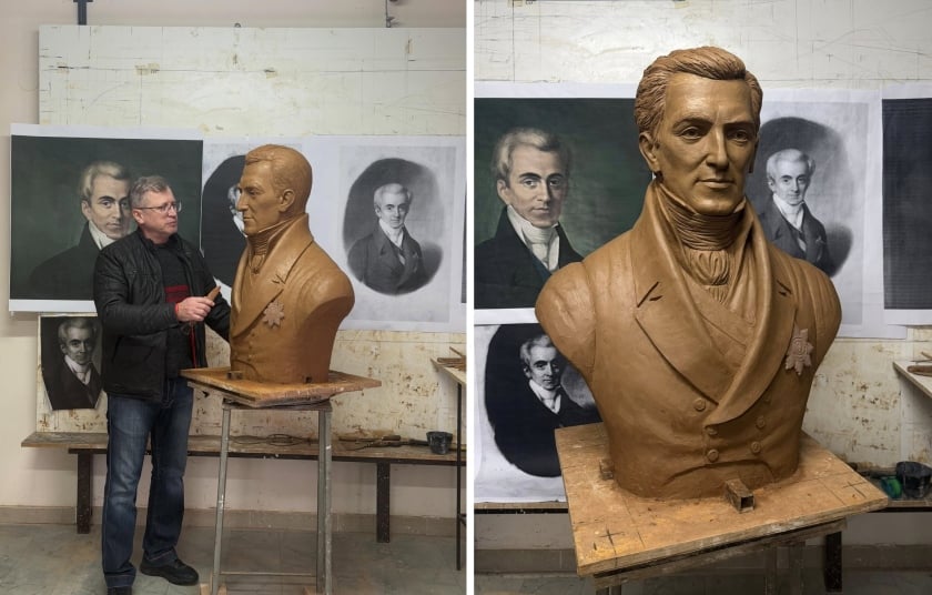 Ο γλύπτης Γιώργος Κικώτης με την προτομή του Ι. Καποδίστρια (φωτ.: facebook/Γιώργος Κικώτης Γλύπτης)