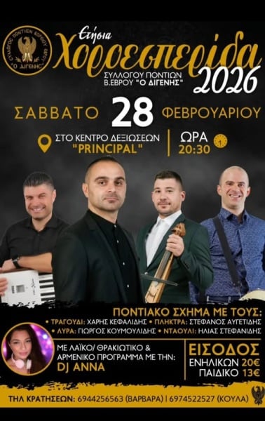 Τον ετήσιο χορό του οργανώνει σήμερα, Σάββατο, ο Σύλλογος Ποντίων Β. Έβρου «Ο Διγενής».
