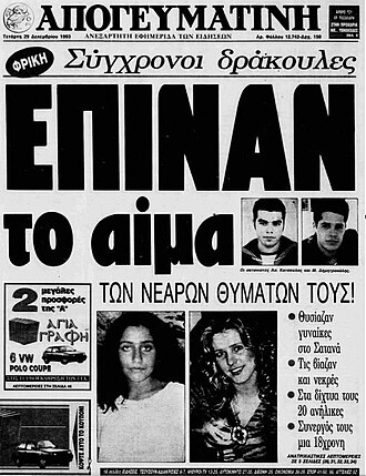 Η ταινία: Ένας από τους δημοσιογράφους που κάλυψαν την υπόθεση και κυκλοφόρησαν και βιβλίο, ήταν ο Κώστας Τσαρούχας. Το βιβλίο μεταφέρθηκε στον κινηματογράφο σε σκηνοθεσία Όμηρου Ευστρατιάδη. Ο τελευταίος είχε αποκαλύψει πολλά χρόνια μετά, ότι η αρχική του επιλογή για τον πρωταγωνιστικό ρόλο ήταν ο νεαρός τότε Γιάννης Μπέζος. Όμως ο παραγωγός λόγω της επιτυχίας του Άγγελου προτίμησε τον Μιχάλη Μανιάτη. Το φιλμ θεωρήθηκε πολύ άγριο για την εποχή και κινήθηκε μέτρια εισπρακτικά. Στο ρόλο της μητέρας που κυνήγησε την υπόθεση, ήταν η αξέχαστη Άννα Μαντζουράνη, ενώ έκπληξη προκαλεί ο Παύλος Ευαγγελόπουλος που ενώ εκείνη την περίοδο ήταν εξώφυλλο στα νεανικά έντυπα της εποχής, δέχθηκε να υποδυθει έναν εκδιδόμενο νεαρό ο οποίος στο φινάλε γίνεται δολοφόνος.