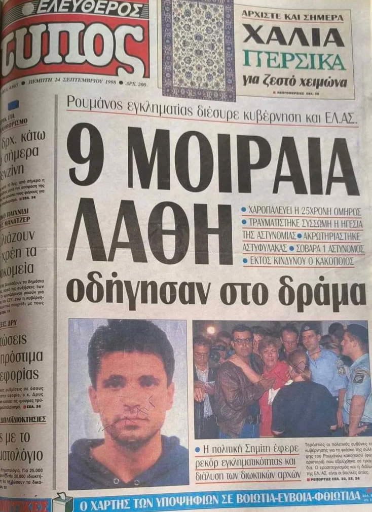 Η υπόθεση: Το βράδυ 23ης Σεπτεμβρίου 1998, σε μια πολυκατοικία στην οδό Νιόβης 4 στα Κάτω Πατήσια, ο Σορίν Ματέι, ένας 27χρονος Ρουμάνος κακοποιός, καταζητούμενος και δραπέτης φυλακών, εισέβαλε σε διαμέρισμα και έθεσε υπό κράτηση τους ενοίκους του με απειλή χειροβομβίδας. Ζήτησε να βγει ζωντανά στην τηλεόραση, όπως και έγινε, ενώ παράλληλα απαίτησε από τις Αρχές να του δώσουν 500.000 δραχμές, αλλά και ναρκωτικά για να «συνεχίσει». Όσον αφορά την οικογένεια που κρατούσε σαν όμηρους, υποσχέθηκε πως δεν θα τους πείραζε.