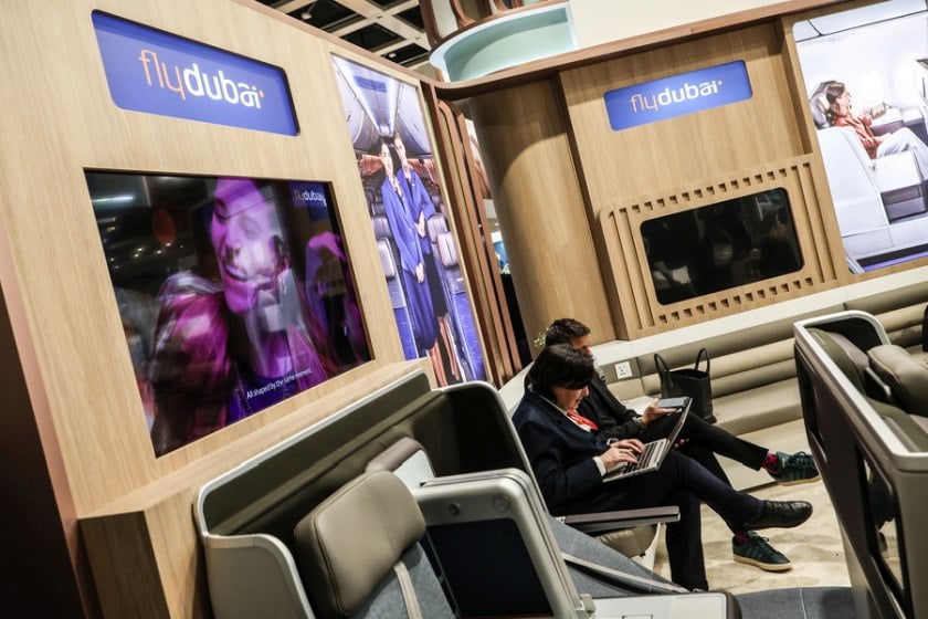 Το πολυτελές περίπτερο της Fly Dubai, αεροπορικής εταιρείας με έδρα το Ντουμπάι (φωτ.: EPA/FILIP SINGER)