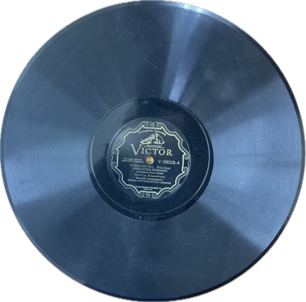 Ο πρώτος δίσκος, V-58028 της Victor Talking Machine Company, ηχογραφήθηκε στις 29 Απριλίου 1929 στη Νέα Υόρκη και περιλαμβάνει τα τραγούδια «Αϊβαλιώτικο Ζεϊμπέκικο» και «Αϊδίνικο Ζεϊμπέκικο», ερμηνευμένα από τον Μανώλη Καραπιπέρη. Η ένδειξη «Orthophonic Recording» μαρτυρά τη χρήση της νεότερης ηλεκτρικής τεχνολογίας ηχογράφησης, που βελτίωσε σημαντικά την ποιότητα του ήχου.