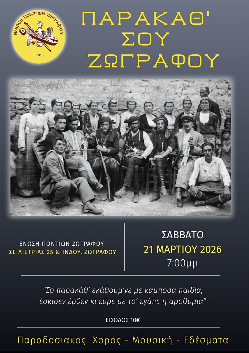 Λίγο πριν την εορταστική περίοδο του Πάσχα και συγκεκριμένα το Σάββατο 21 Μαρτίου, στις 19,00, η Ένωση Ποντίων Ζωγράφου ανοίγει τις πόρτες της και υποδέχεται φίλους και μέλη σε ένα παραδοσιακό «Παρακάθ’», γεμάτο μουσική, συγκίνηση και αυθεντική ποντιακή φιλοξενία.