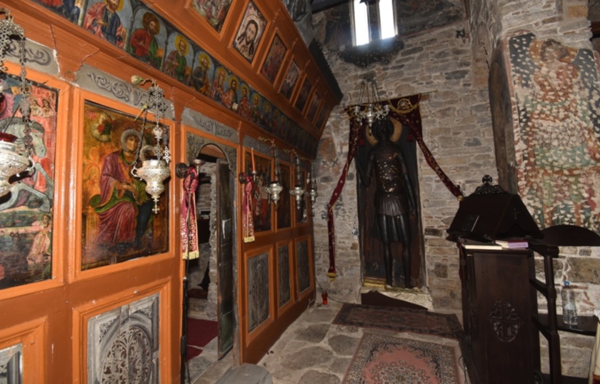 Οι τοιχογραφίες του σχετίζονται με τη δυναστεία των Παλαιολόγων, και ξεχωριστή θέση κατέχει η ανάγλυφη εικόνα του Αγίου Γεωργίου.