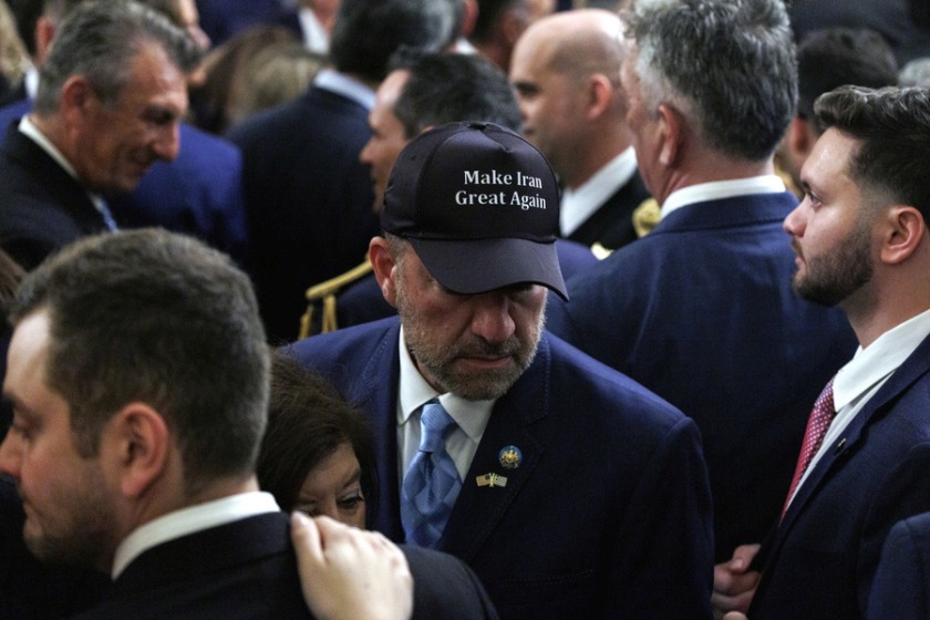 Ομογενής φοράει καπέλο με το σύνθημα «Make Iran Great Again» (Να κάνουμε το Ιράν ξανά μεγάλο) κατά τη διάρκεια του εορτασμού της Ελληνικής Ημέρας Ανεξαρτησίας (φωτ.: EPA/ WILL OLIVER / POOL)
