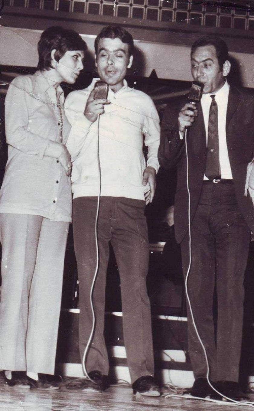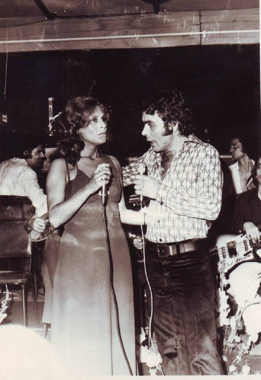 Με τον Μάνο Λοΐζο που ανακάλυψε το ταλέντο της, στην πολύ γνωστή μπουάτ της εποχής, «Απανεμιά» (φωτ.: Facebook/Ρένα Κουμιώτη Official)