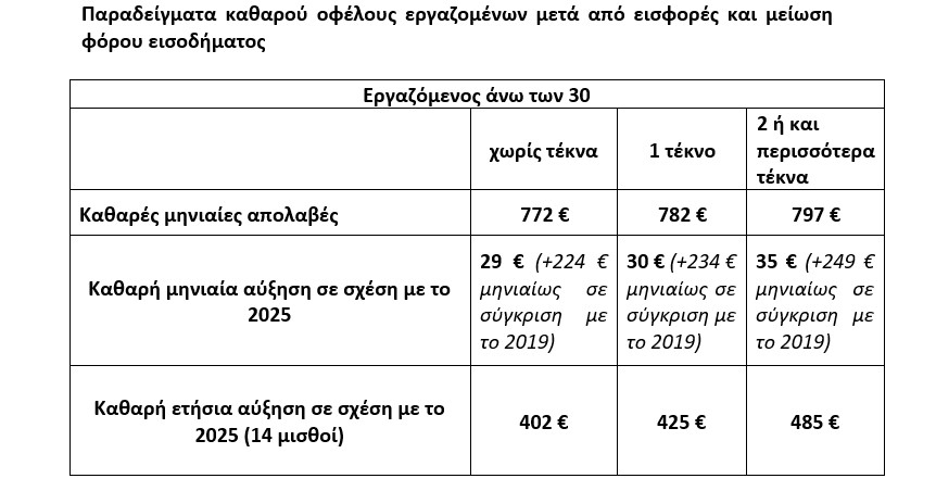 Από το 2019, η σωρευτική αύξηση αγγίζει τα 270 ευρώ μηνιαίως ή 3.780 ευρώ ετησίως, 4,2 έως 5,8 μισθοί παραπάνω, δηλαδή 41,54% συνολική αύξηση από το 2019.