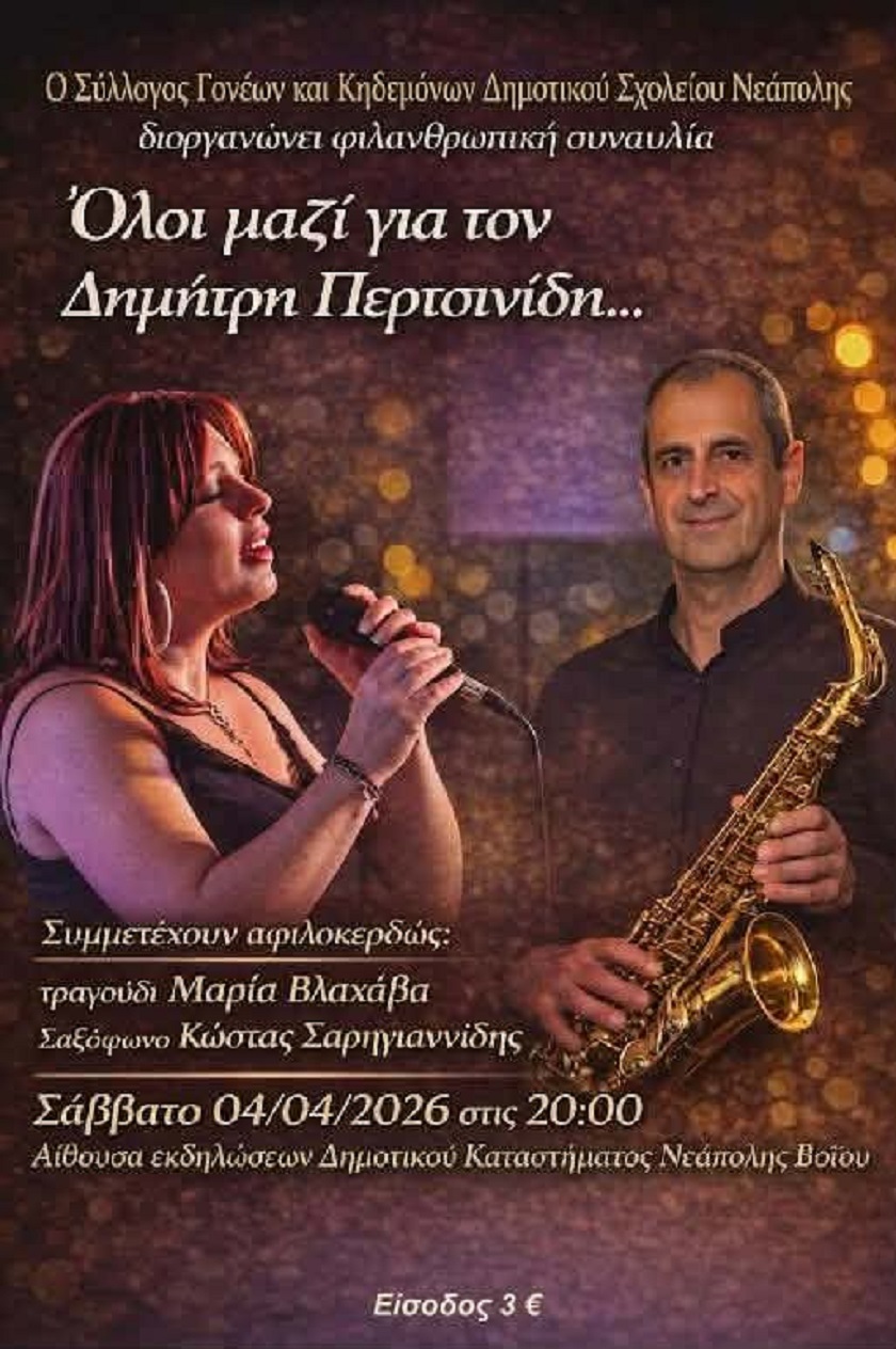 Μια ξεχωριστή φιλανθρωπική συναυλία με βαθύ ανθρώπινο μήνυμα διοργανώνει η Εύξεινος Λέσχη Βοΐου Νεάπολης Κοζάνης, με σκοπό να στηρίξει τον Δημήτρη Περτσινίδη, έναν νέο άνθρωπο που δίνει μια δύσκολη μάχη για τη ζωή.