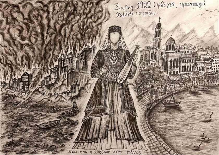Η 17χρονη κατάφερε να ξεχωρίσει με το ζωγραφικό έργο της, αποτυπώνοντας με έντονο και ευαίσθητο τρόπο τον πόνο, τις δοκιμασίες και τους διωγμούς του ελληνισμού.