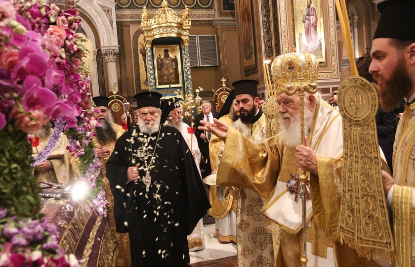 Στην Αθήνα, η Ακολουθία του Επιταφίου Θρήνου τελέστηκε στον Καθεδρικό Ιερό Ναό του Ευαγγελισμού της Θεοτόκου, παρουσία του Αρχιεπισκόπου Αθηνών και πάσης Ελλάδος Ιερώνυμου.