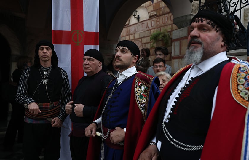 Ζιπκαλήδες με την εικόνα της Αναστάσεως στην υποδοχή του