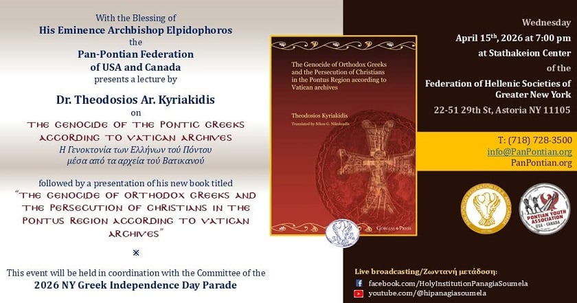 Μια ιδιαίτερα σημαντική εκδήλωση με ιστορικό και ερευνητικό ενδιαφέρον πρόκειται να πραγματοποιηθεί στην Αστόρια της Νέας Υόρκης, με κεντρικό ομιλητή τον διακεκριμένο καθηγητή του Αριστοτελείου Πανεπιστημίου Θεσσαλονίκης και πρόεδρο της Ευξείνου Λέσχης Θεσσαλονίκης, Δρ. Θεοδόσιο Αρ. Κυριακίδη.