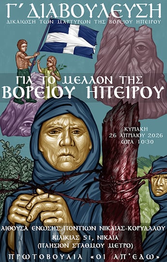Σας προκαλούμε να συμμετέχετε ισότιμα στη 3η Πανελλήνια Ημερίδα – Διαβούλευση «για το μέλλον της Βορείου Ηπείρου». Το φετινό μας θέμα αφορά στην οργάνωση των προσπαθειών όλων μας για την επίσημη αναγνώριση εκ μέρους της ελληνικής πολιτείας, των αγώνων του διαχρονικά διωχθέντος ελληνισμού στην Αλβανία.