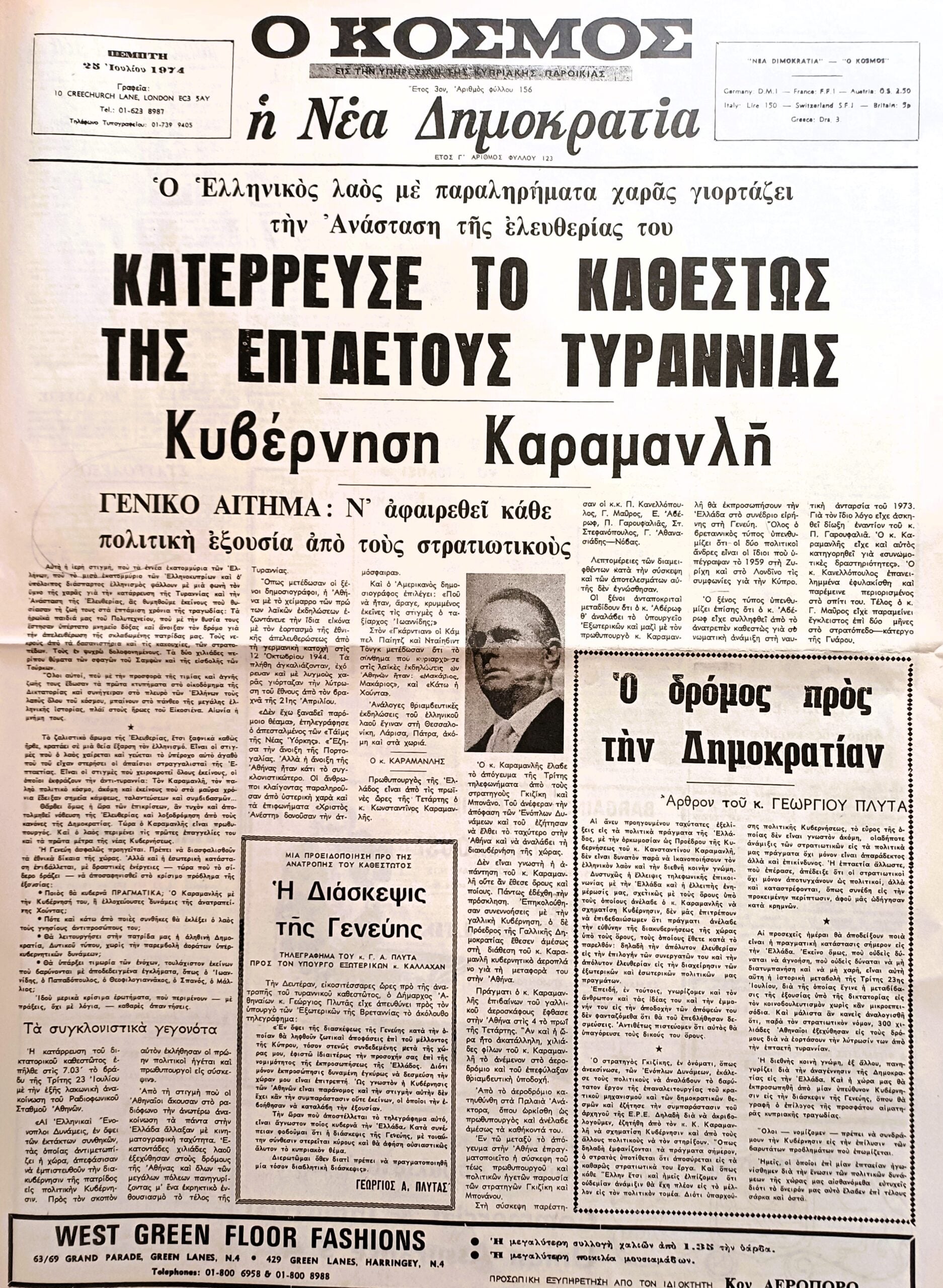 Ούτε χρόνος δεν έχει κλείσει από την κατάρρευση της δικτατορίας στην Ελλάδα. Οι σκοτεινές μνήμες είναι πολύ νωπές και οι φήμες για κινήσεις που υπονομεύουν την προσπάθεια αποκατάστασης της δημοκρατίας, οργιάζουν.