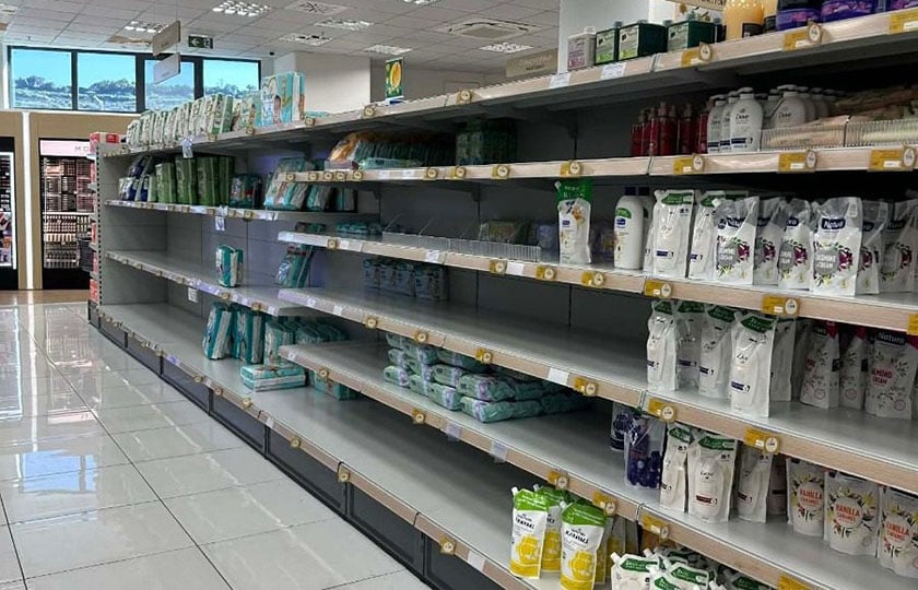 Πλέον, με το μπλόκο να έχει φτάσει τις έξι ημέρες, η εφοδιαστική αλυσίδα έχει απορρυθμιστεί πλήρως. Τα φορτηγά δεν μπορούν να αποβιβαστούν και τα εμπορεύματα παραμένουν εγκλωβισμένα, δημιουργώντας σοβαρές ελλείψεις σε βασικά προϊόντα.