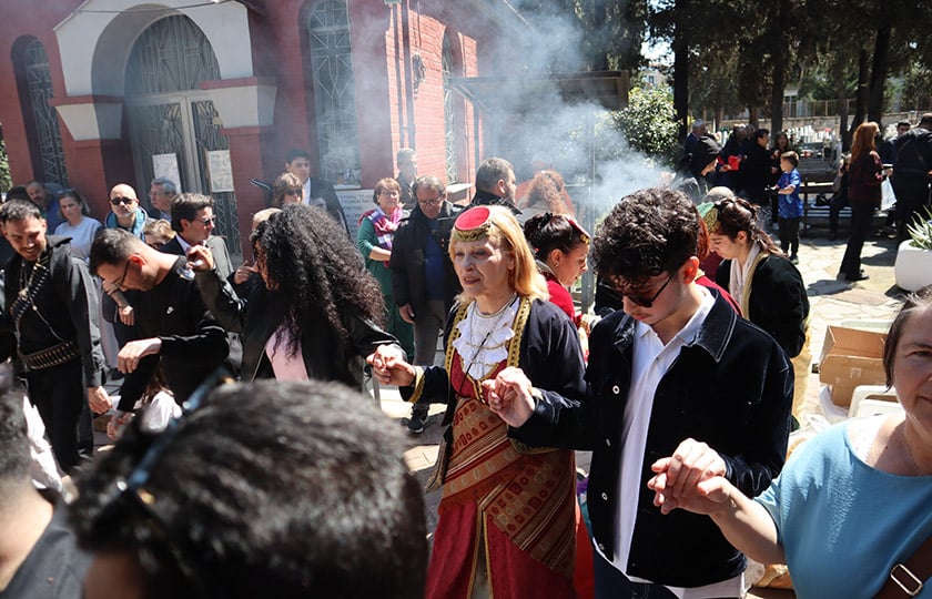 Μικροί και μεγάλοι, αρκετοί με παραδοσιακές φορεσιές, έδωσαν το παρών για να τιμήσουν τους νεκρούς τους όχι με θρήνο, αλλά με παρουσία, προσευχή και κοινή μνήμη, με τραγούδια και χορούς της αλησμόνητης πατρίδας.
