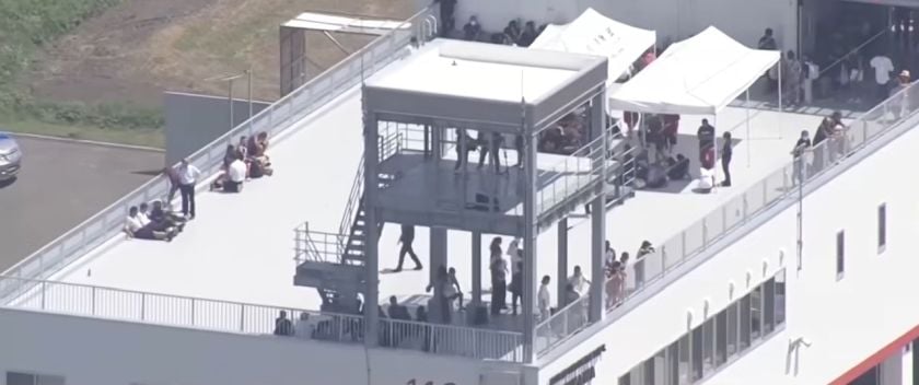 Ιάπωνες έχουν ανέβει στην ταράτσα κτηρίου μετά απο τις προειδοποιήσεις των Αρχών για τσουνάμι (πηγή: youtube.com/watch?v=b93A_cg96nU)
