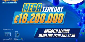 ΕΛΛΑΔΑ Το ΤΖΟΚΕΡ κληρώνει απόψε 18,2 εκατ. ευρώ σε ένα από τα μεγαλύτερα τζακ ποτ στην ιστορία του παιχνιδιού 28/01/2025 - 1:19μμ
